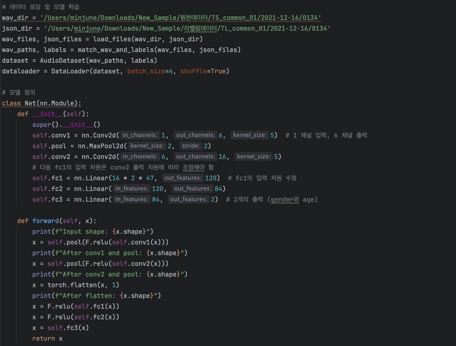 폴더 내의 모든 wav파일과 json파일을 불러오는 함수를 os 라이브러리를 이용해 정의했습니다.